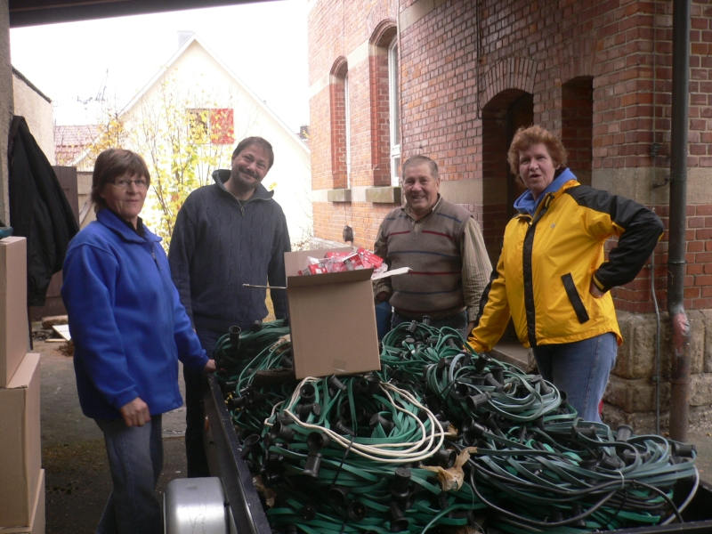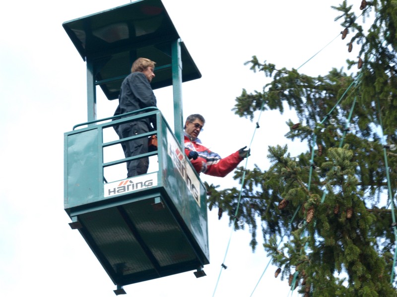 Der Wind hat nachgelassen und wir hatten das beste Wetter zum Baum schmücken erwischt. Viele fleißige Helfer beteiligten sich beim Lichterketten entwirren und aufhängen.