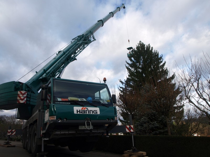 Ohne die Unterstützung des Riesenkrans der Fa. Häring und dessen Kranführer Uli wäre das gar nicht möglich gewesen. Daher an dieser Stelle nochmals herzlichen Dank.